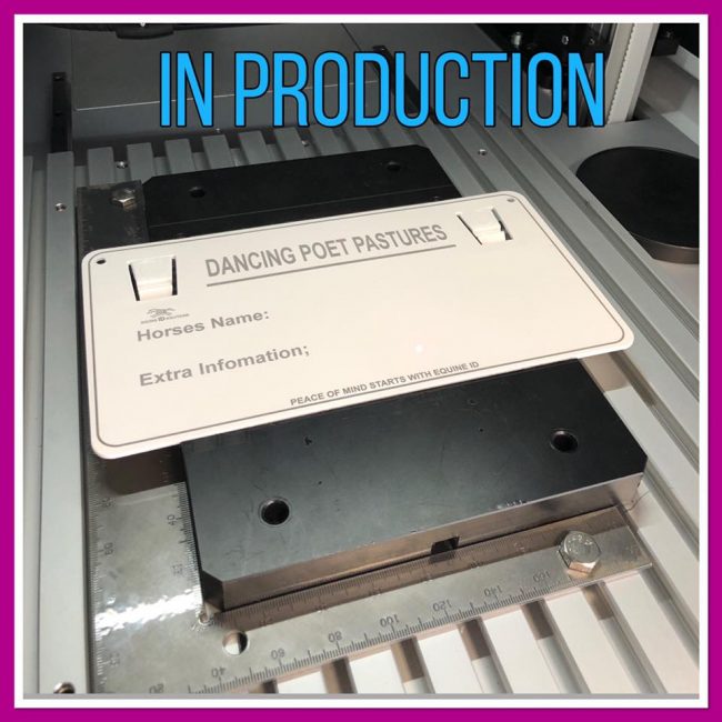 Whilst in production of a Custom Reusable Stall ID Plate order, we thought we would take a moment to discuss our continued QA & QC processes and provide some feedback on the types of testing we do! As horse people we use them at home on the farm just like you. Pictured on the left…